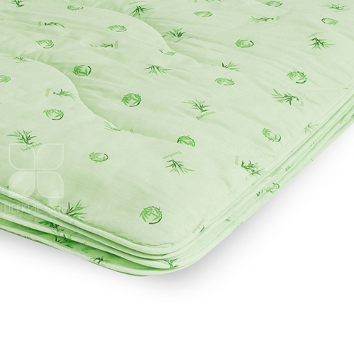 Особенностью одеяла является стеганый чехол, что не позволяет наполнителю скатываться в комки. В качестве наполнителя используется искусственный «лебяжий пух» и бамбуковое волокно, одеяло выполнено из ткани поплин (100% хлопок) салатового цвета с бамбуковым рисунком.