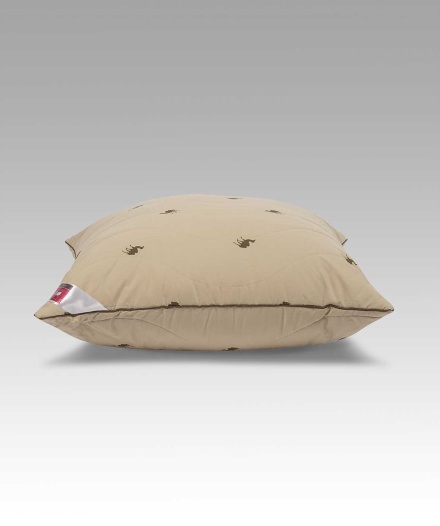 Любителям теплых и уютных постелей предлагаем купить подушку с наполнителем из верблюжьей шерсти и искусственного «лебяжьего пуха». Шерсть обладает отличными согревающими свойствами и способна быстро поглощать влагу, поэтому производимое верблюжьей шерстью целебное тепло называют сухим.