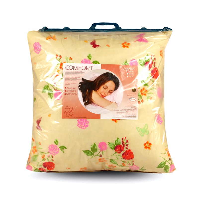 Холлофайбер, это утеплитель и наполнитель на основе 100% полиэстера. Из-за того, что волокна пустотелые и скрученные в пружинки в виде шариков, холлофайбер меньше слёживается, поэтому изделия из холлофайбера хорошо сохраняют свою форму и пышность долгое время. Подушка из холлофайбера не токсична, подходит даже аллергикам, в такой подушке никогда не заведутся клещи. Мы рекомендуем купить подушки холлофайбер, так как по комфорту, их практически невозможно отличить от продукции с натуральным пухом, а по цене они значительно дешевле.